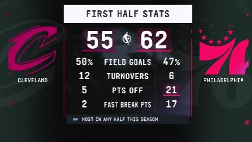 bob半岛体育平台-反击打到爽!76人上半场利用骑士失误得分21分 联盟本赛季最高